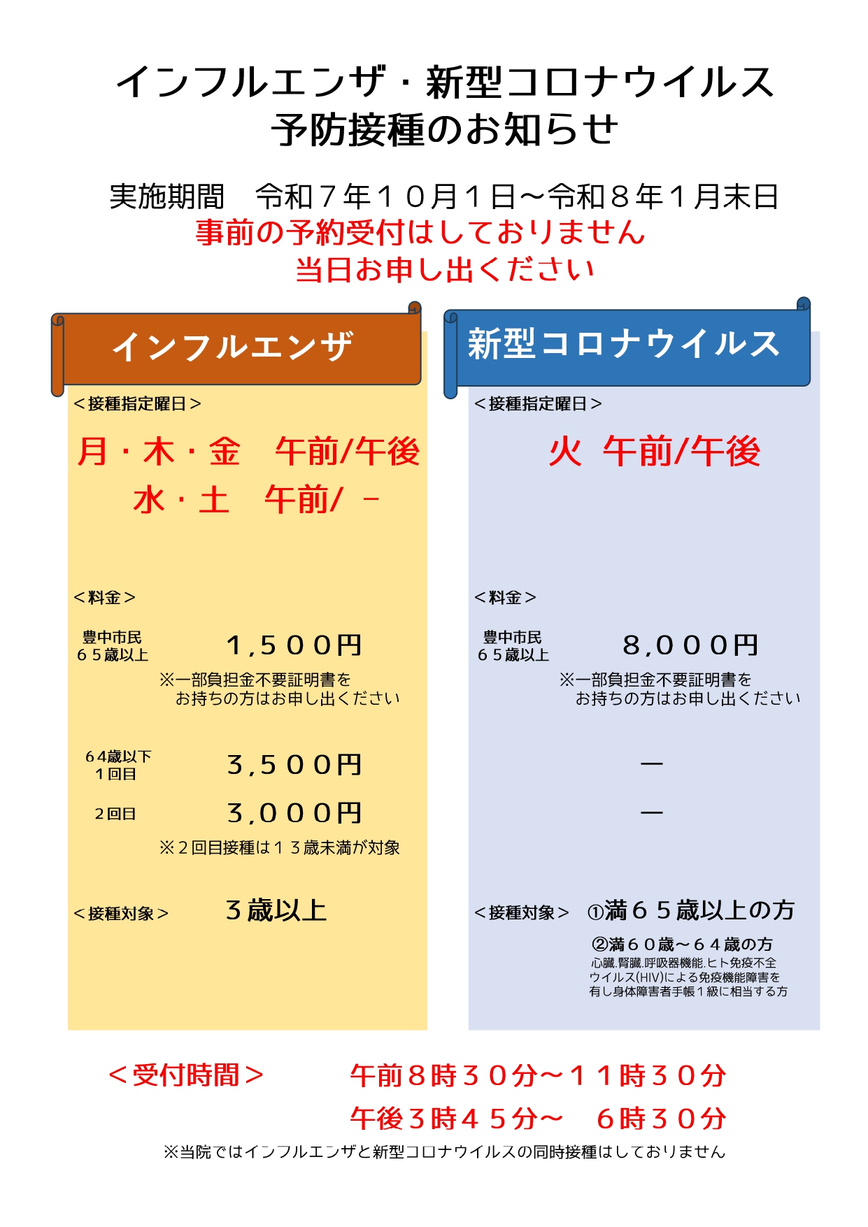 インフルエンザ・新型コロナウイルス予防接種開始しました